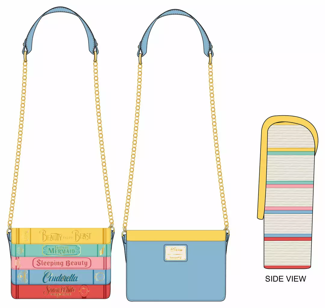Hit the books like a real Disney Princess: effortlessly! Maintain a smart and stylish look with this Disney Princess Books Classics Crossbody Bag. The front of the bag displays gold-detailed spines of books for classic tales that includeĀ Beauty and the Beast,Ā Aladdin,Ā Sleeping Beauty,Ā Cinderella, andĀ Snow White and the Seven Dwarfs. From the side view, the books form a nice, neat stack with all the pages perfectly aligned. This crossbody bag makes for a great complement to any Disney outfit and is perfect for fans wishing to keep their favorite animated movies close.