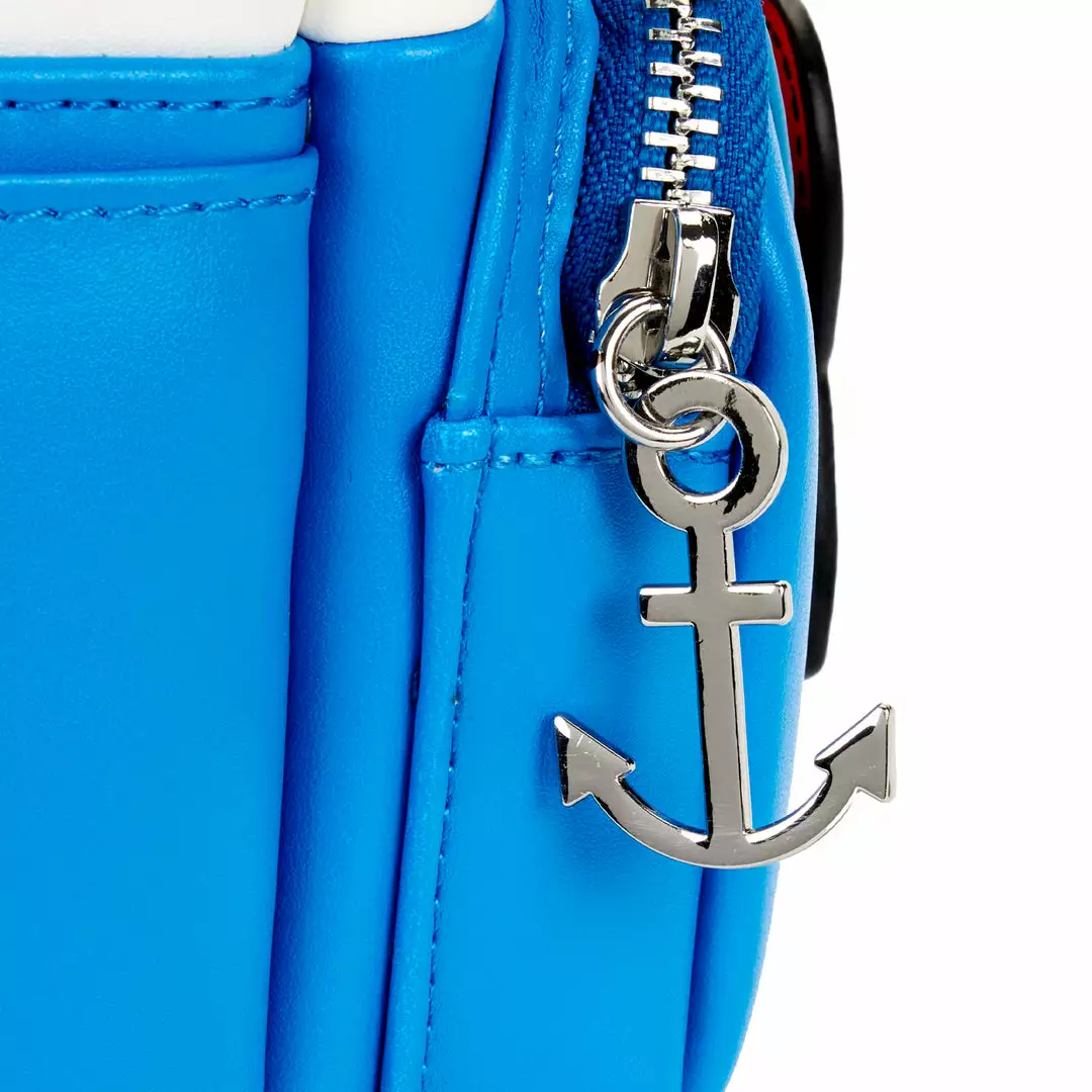 Donald Duck is coming in for a landing to ride with you on your next adventures with this Donald Duck Cosplay Mini Backpack. On the front of the bag, Donald Duck’s face peeks out over the front zipped compartment, which is accented by a bright red bow, with 3D details. The message on the back reads “Aw, Phooey!” This backpack is a great accent for any Disney outfit.