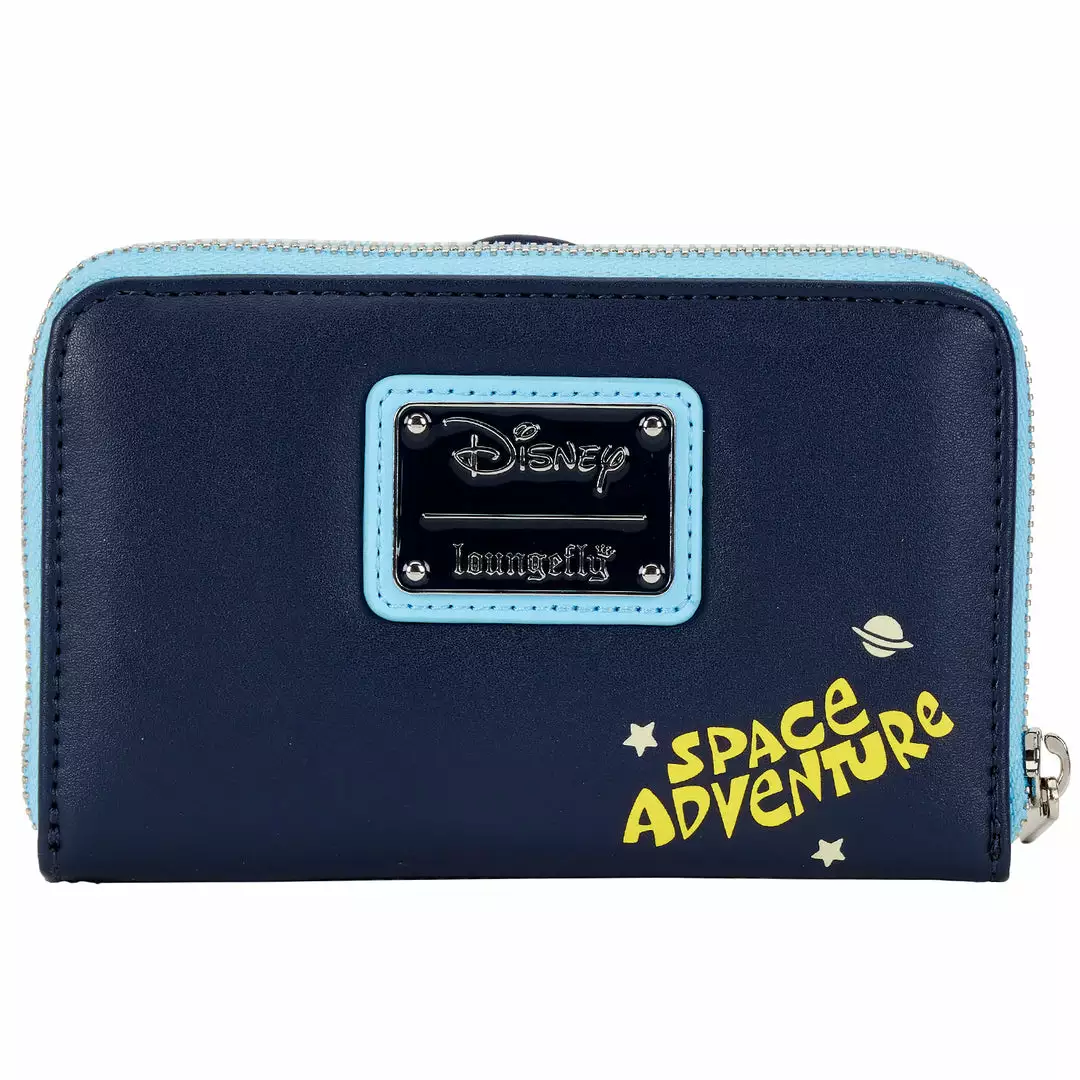 A coin-operated rocket ride provides out-of-this-world adventure for the imaginative duo, Lilo and Stitch. Have a blast taking them with you as this Lilo & Stitch Space Adventure Glow in the Dark Zip Around Wallet. On the front of the wallet, Lilo and Stitch have managed to fly to outer space in the coin-operated “Space Adventure” rocket ship. Even the stars around them glow in the dark! Lilo is having too much fun to notice that the ride might be a bit much for Stitch to handle. On the back side, planets and stars surround the words “Space Adventure.” In fact, the star and planet also glow in the dark.