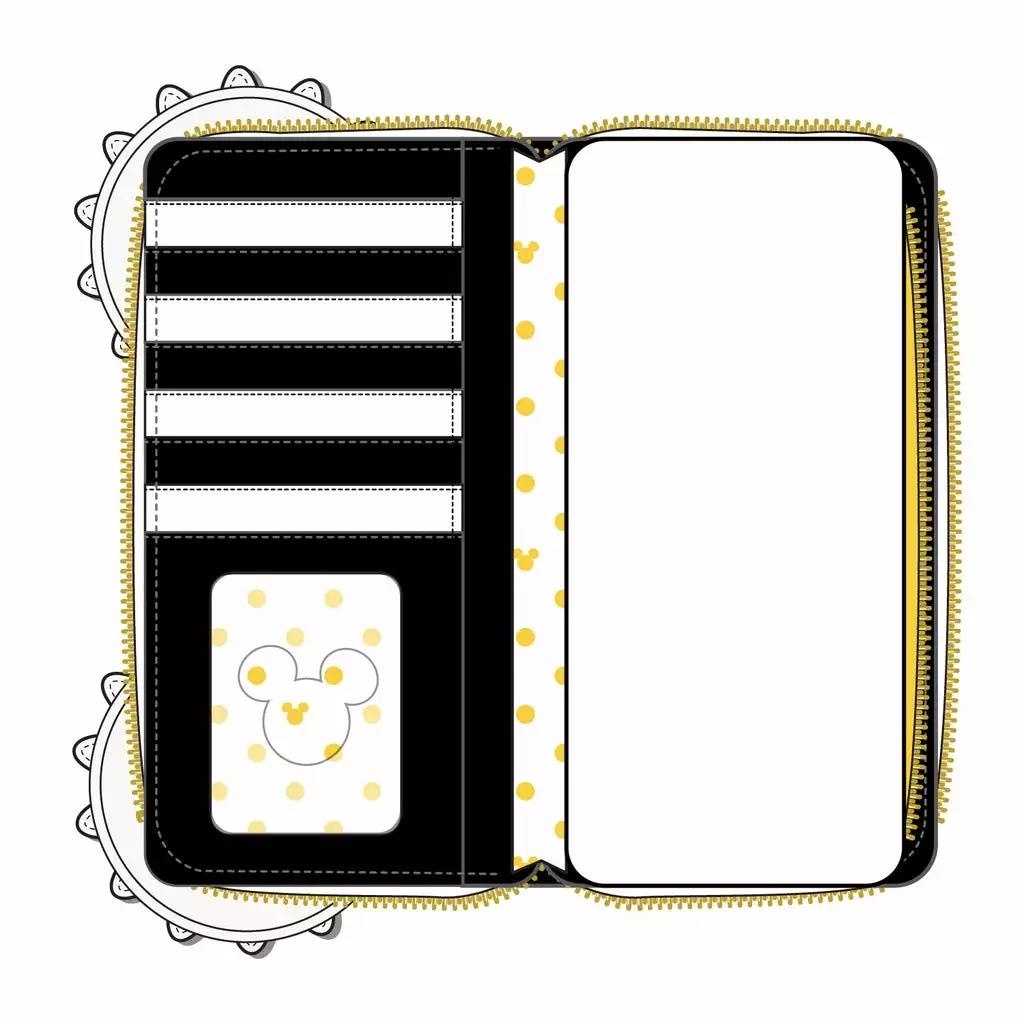 Get ready for spring with the Minnie Mouse Daisy Zip Around Wallet! The white daisies and polka dots stand out against the black background, adding a bright yellow zest to spring or even summer outfits. The wallet has 6 slots for holding cards, a clear window slot for holding your ID, and a zipper pocket. This wallet will help you brighten the new year!