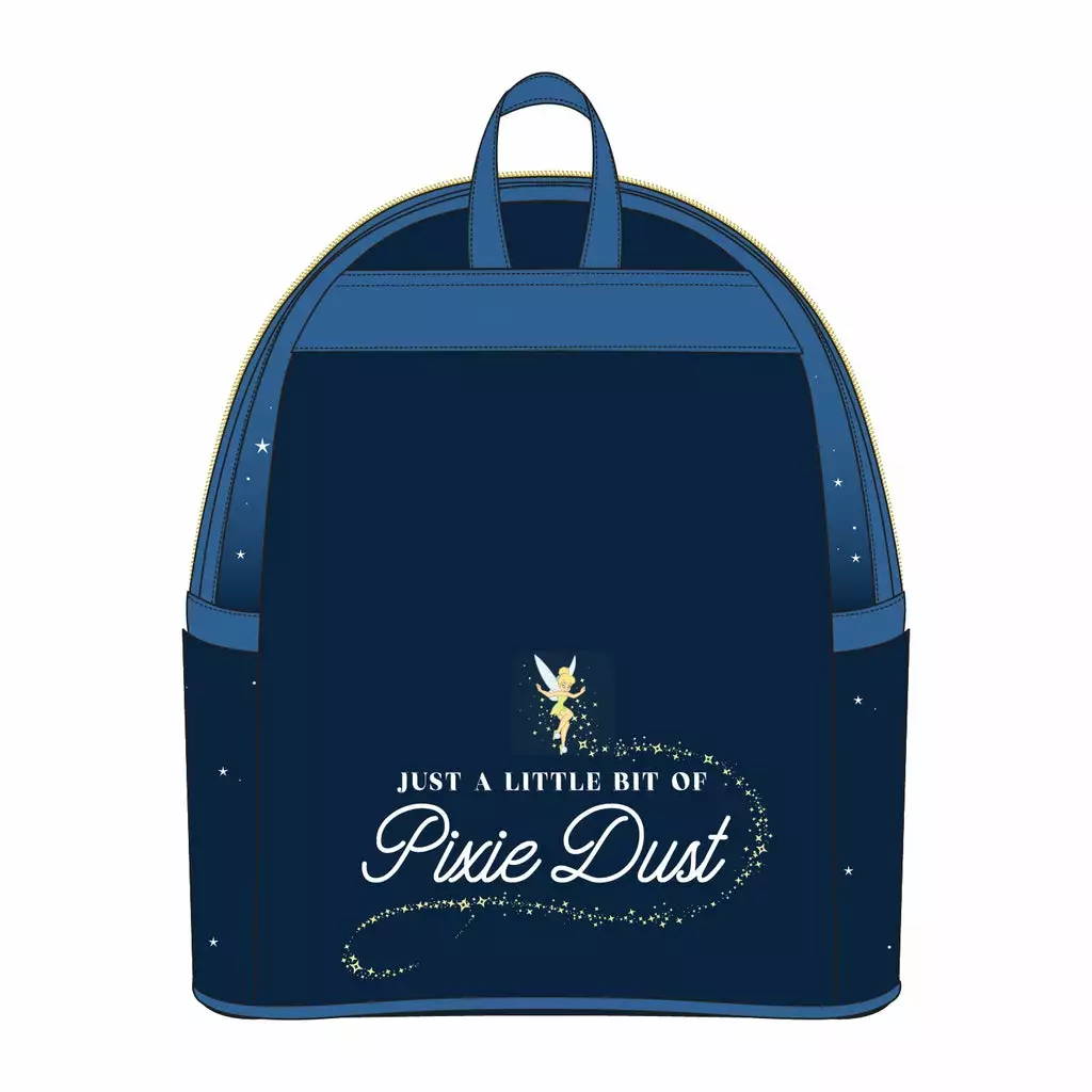Tink’s pixie dust has set the wheels in motion. Peter Pan will whisk the Darling children away to Never Land. Hang on tight to witness this scene up close with this Loungefly Peter Pan Clock Glow in the Dark Mini Backpack.