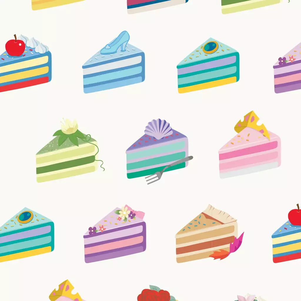 The “icing on the cake” is guessing which cake goes with each princess, based on the decoration adorning every delectable piece. The following Disney princesses are represented: Cinderella, Jasmine, Tiana, Aurora, Snow White, and Ariel. Note the coordinating inside lining, which includes a motif of slices of each cake. Backpack features include the following details: sturdy gold-colored metal hardware, pockets on each side, adjustable straps, vegan leather (polyurethane), and applique and print work. Please note: Patterns will vary with all-over-print styles. Not every piece will look identical nor will every piece be an exact match as to what is pictured online.