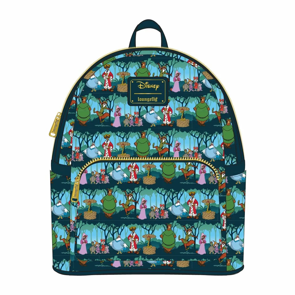 Robin Hood and Little John walkin’ through the forest- oh and there’s Maid Marian, Lady Kluck, Prince John, Sir Hiss, and the children too. There’s quite a commotion in Sherwood Forest since this Loungefly Disney Robin Hood Sherwood Mini Backpack has appeared. This backpack is here to steal hearts while you adventure through various lands.