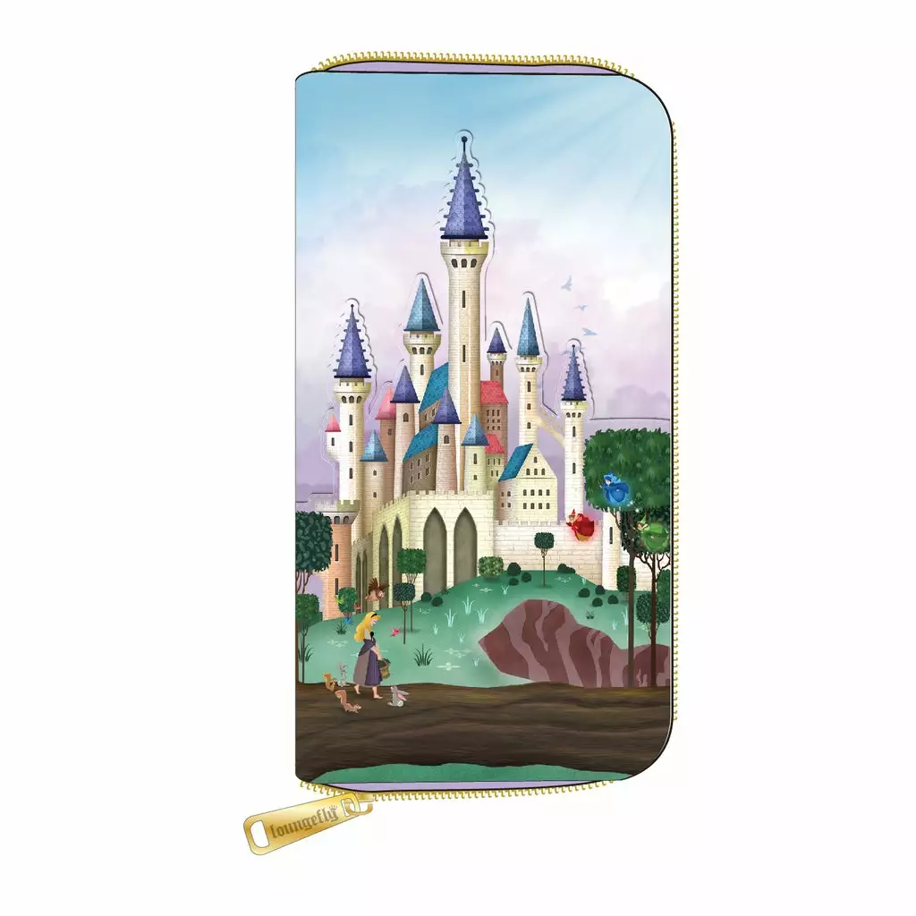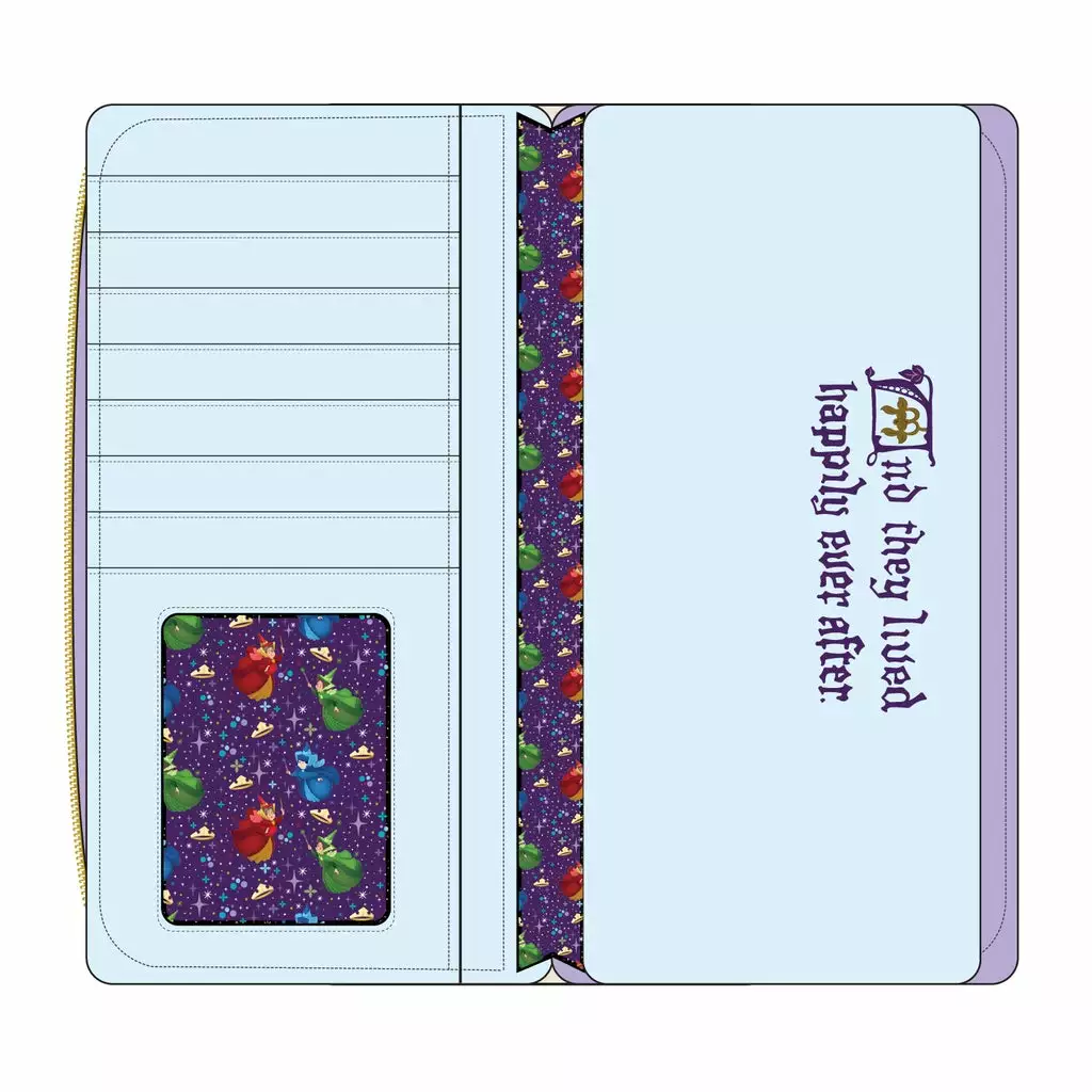 Live happily ever after with this Loungefly Disney Sleeping Beauty Castle Zip Around Wallet. Since 1959, Disney’s Sleeping Beauty has enchanted audiences with the possibility of “love’s true kiss.” Spells can be broken, with just a little fairy dust, and the interior lining of this wallet carries a magical fairy godmother motif for safekeeping.