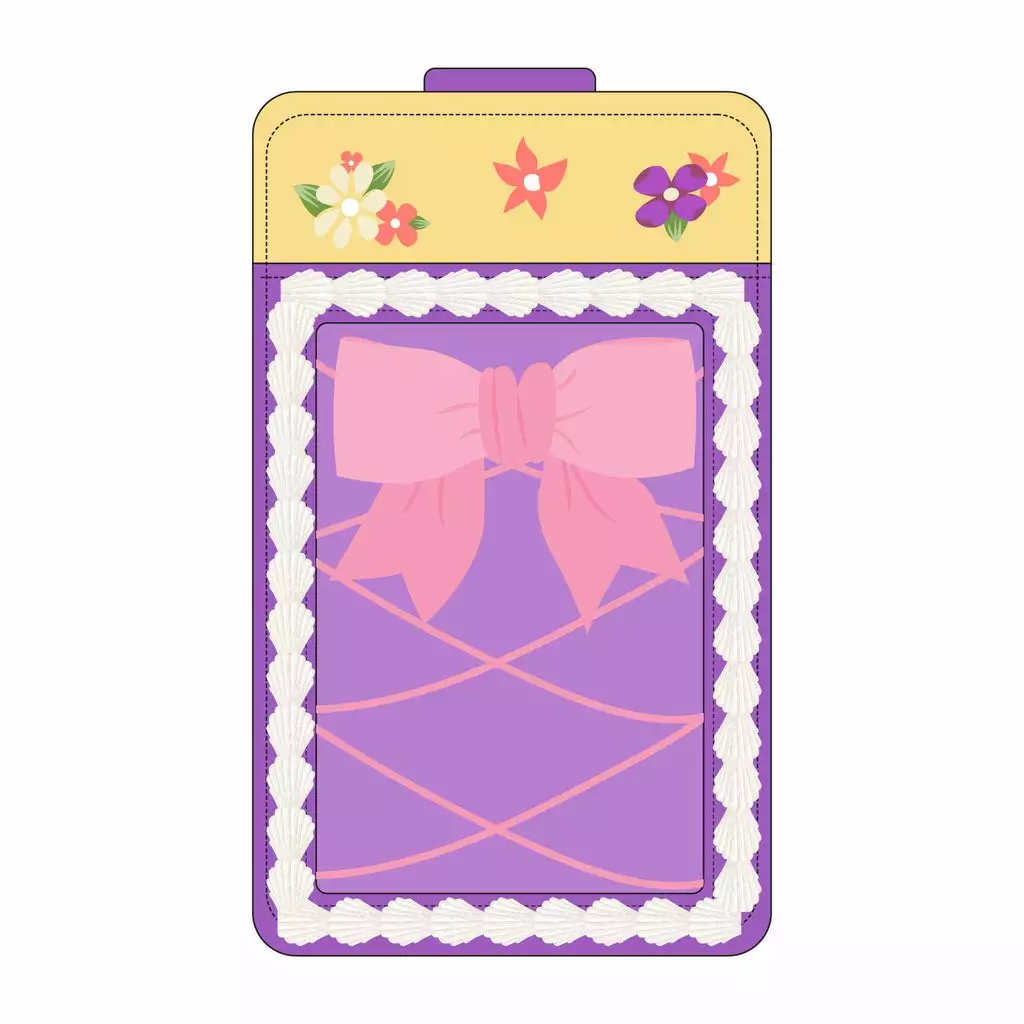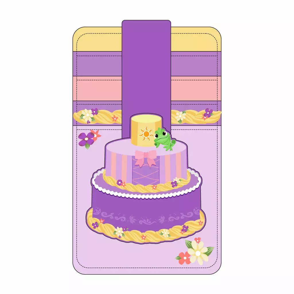 Pascal practically glows with excitement, atop a cake fit for a princess. Celebrate Rapunzel’s journey home with this Loungefly Tangled Rapunzel Cake Cosplay Card Holder