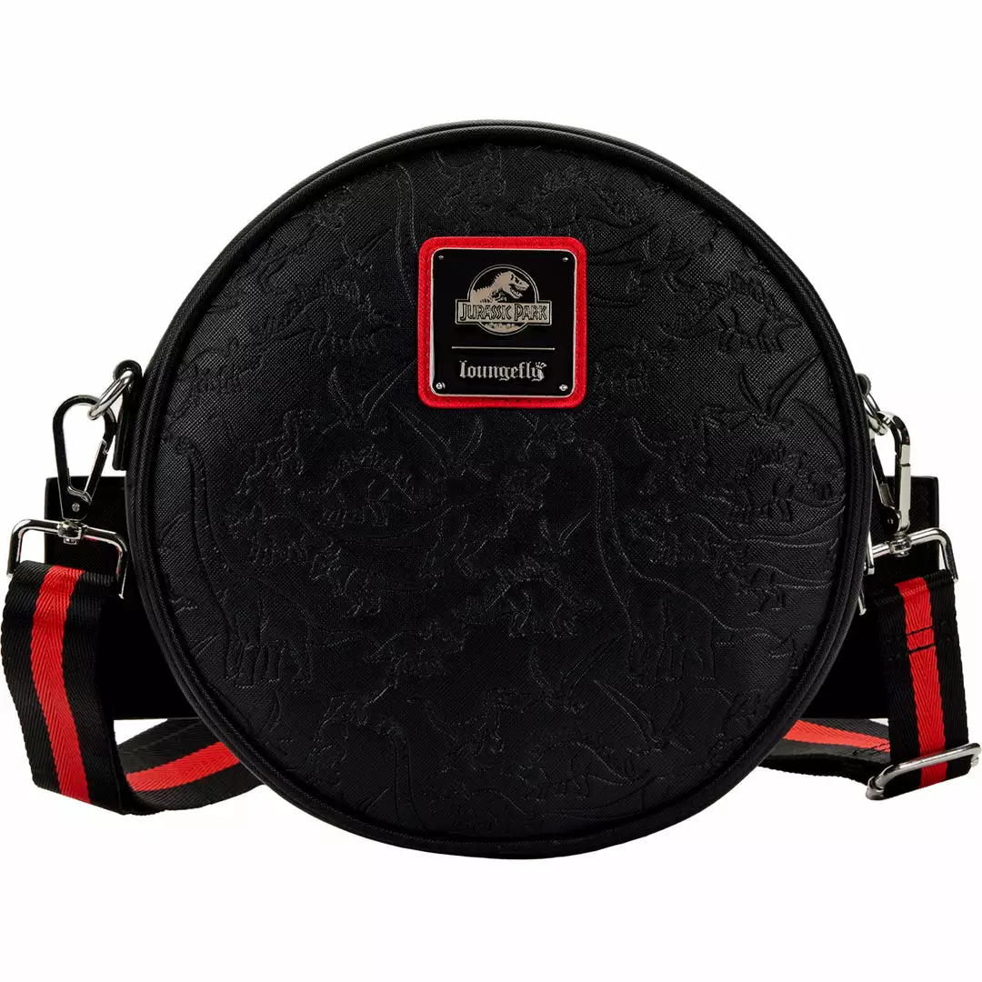 Prepare for any adventure with this Jurassic Park Logo Crossbody Bag. Carry this bag with you to transform even the most mundane journeys into fun-filled excursions on a larger-than-life scale. On this sphere-shaped bag, the words Jurassic Park stretch out over the central image, which displays Jurassic Park’s signature Tyrannosaurus Rex in shadow form, looming over a forest, against a fire-orange sky.