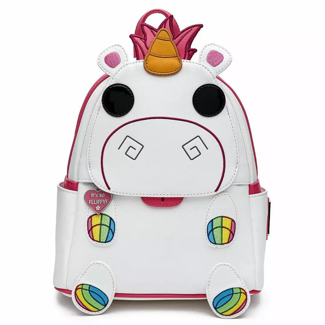 t’s so fluffy! Okay, it’s not. But, this Loungefly Mini Backpack Minions Fluffy Unicorn is just as adorable as the plush toy Gru won for Agnes at the amusement park! Designed with colorful faux leather and appliqued details this trendy and practical bag is a must-have for any fan of Despicable Me.