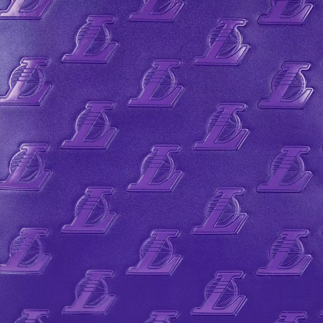 Team up and share your spirit with this NBA Los Angeles Lakers Logo Mini Backpack. On the front, the embroidered Los Angeles Lakers logo, with the fast-moving golden basketball, prominently appears over the front zipped compartment. The front and back carry a debossed motif of the signature “L” and basketball, with streaking lines, against a purple background. Gold trim adds accent and contrast in team uniform color.