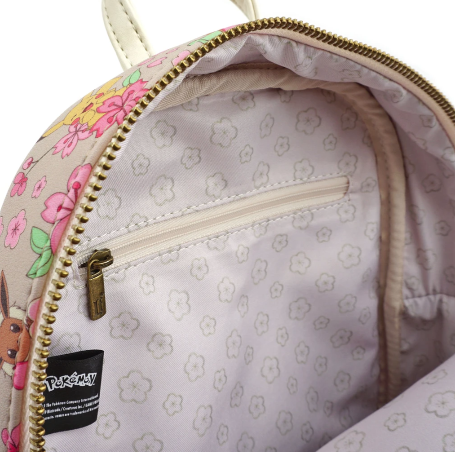 Has there ever been two better friends in the whole wide world? Pikachu and Eevee are pretty much the bestest of friends. This friendship floral collection comes just in time for National Pokemon Day on February 27th. This backpack can also convert into a crossbody bag. This faux leather convertible backpack includes printed, piping and metal plaque details.