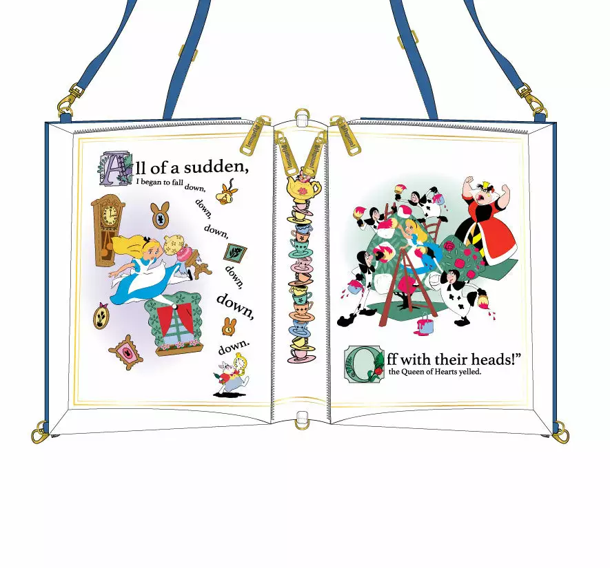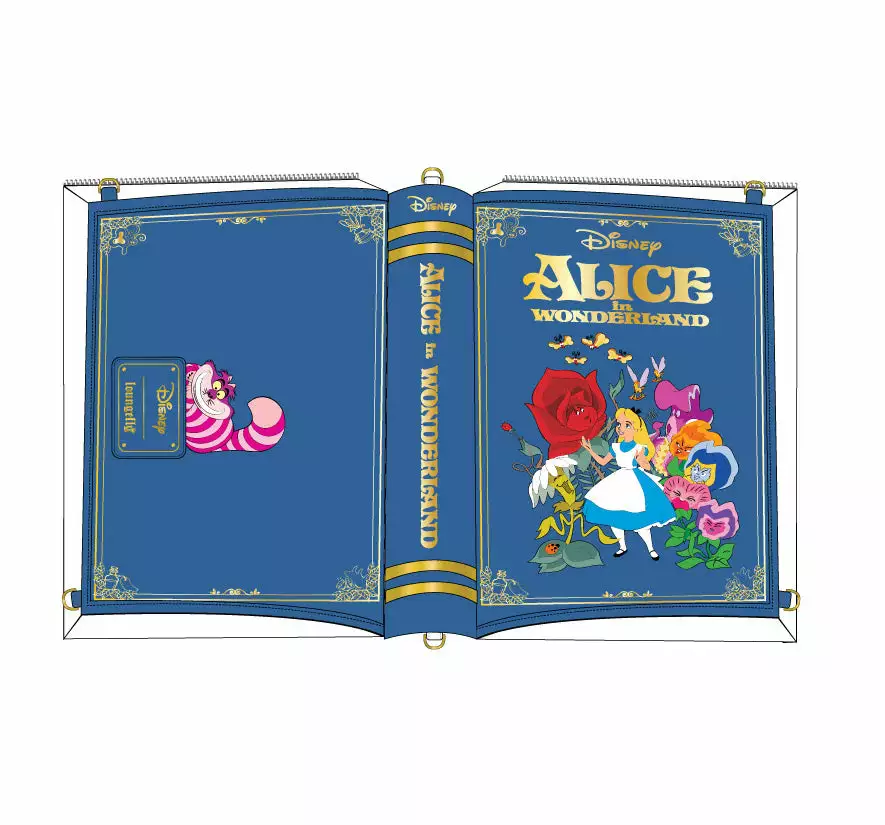 Take a wondrous trip with Alice and capture her adventures with this Alice in Wonderland Book Convertible Crossbody Bag. This convertible bag is shaped like a book and opens up to the pages of Alice’s journeys—from the lessons she learns from the flowers–to her encounter with the Red Queen. Adjustable, removable straps help convert the handbag into a backpack. On the back, the grinning Cheshire Cat makes an appearance. This accessory complements any Disney outfit and is perfect for fans who are looking to keep their favorite animated moments close.