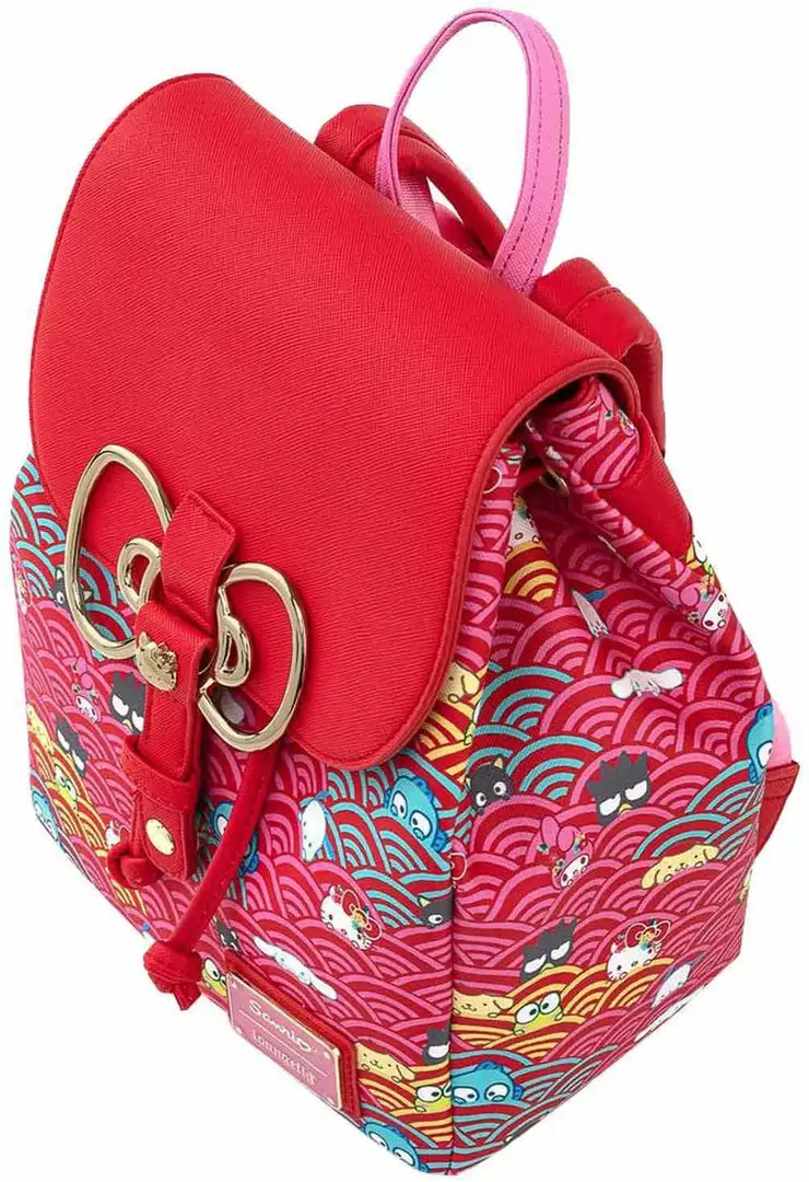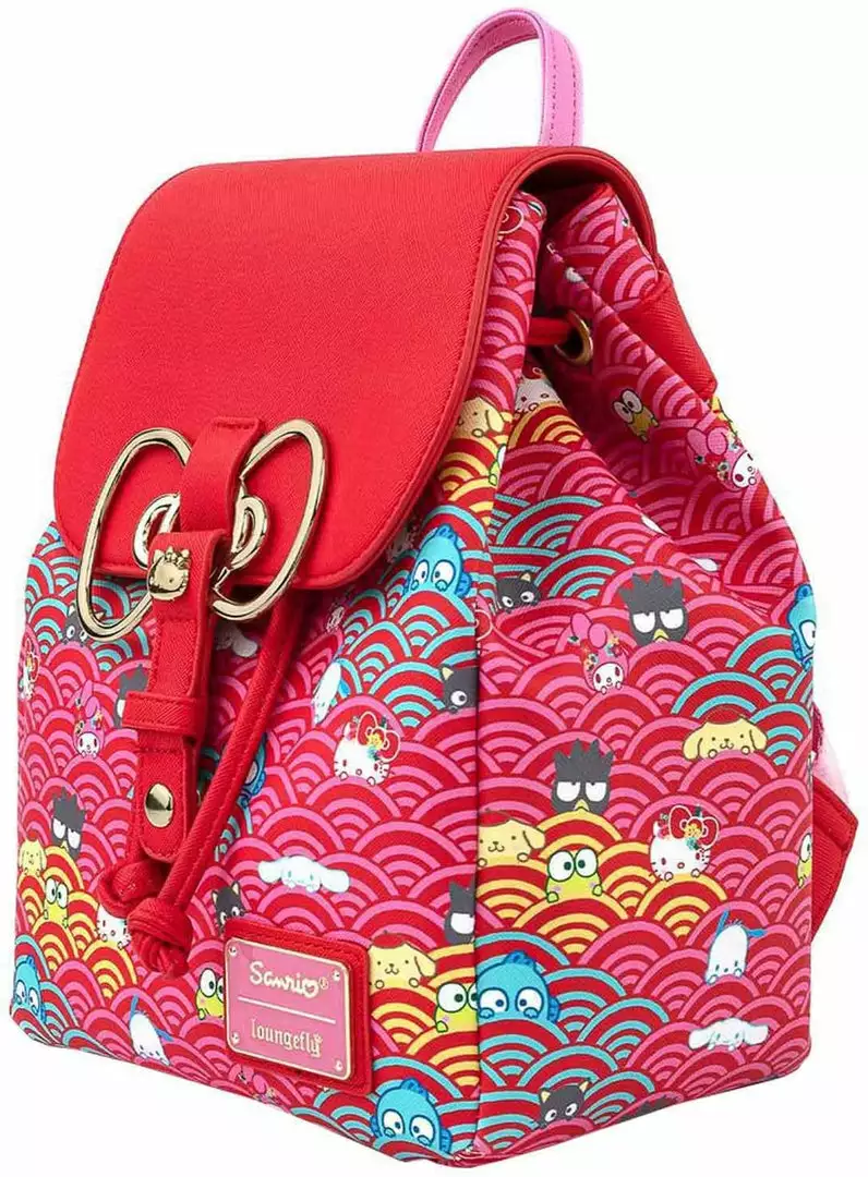 Sanrio is celebrating its 60th Anniversary and a whole crowd has gathered. Hello Kitty, Chococat, Pom Pom Purin, Kero Kero Keroppi, Cinnamoroll, and Hangyodon can all be seen in this backpack’s all-over-print design. The Sanrio 60th Anniversary Gold Bow AOP Backpack is the perfect accessory for fans of Sanrio and their classic characters. The Sanrio 60th Anniversary Gold Bow AOP Backpack is made of vegan (polyurethane) leather.