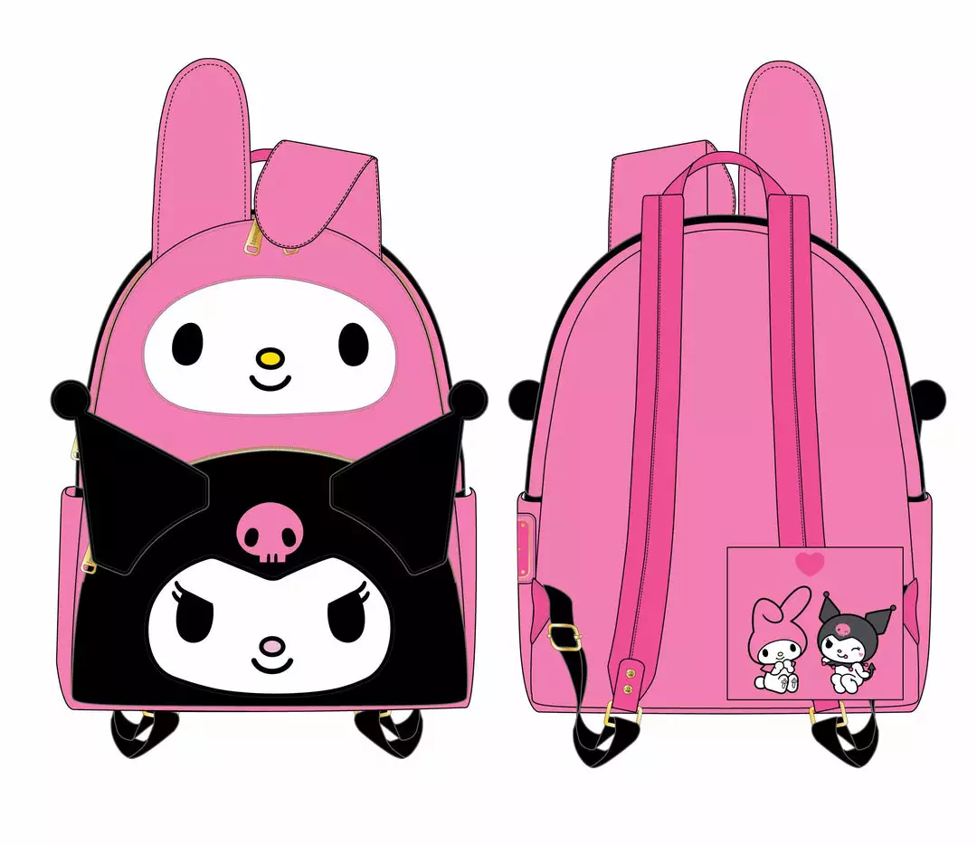 Unite My Melody and Kuromi and take them with you on your journeys with this Loungefly My Melody and Kuromi Double Pocket Cosplay Mini Backpack.