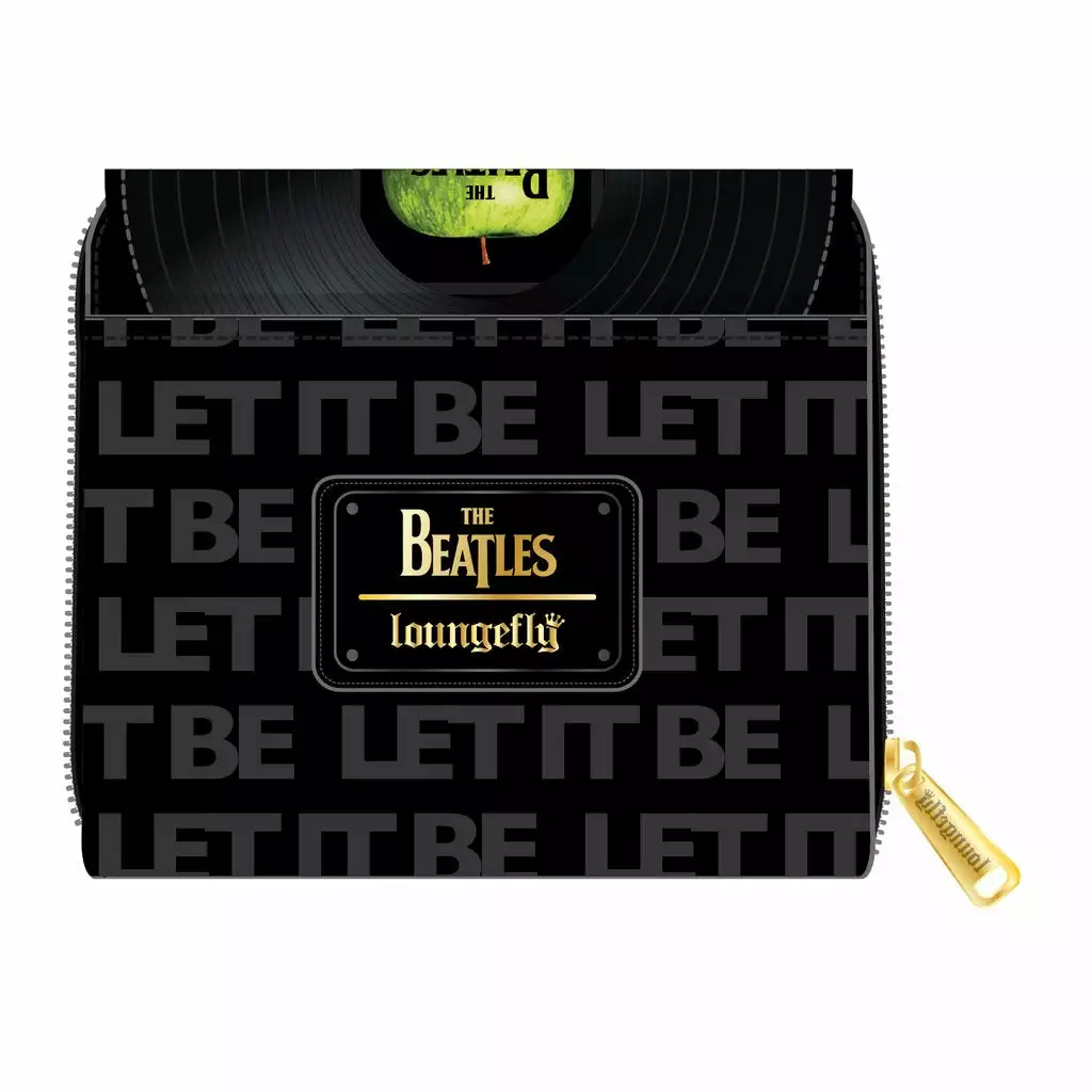 In times of trouble this Loungefly The Beatles Let It Be Vinyl Record Zip Around Wallet will bring you joy as well as utility. Carry your journey’s necessities and the memories of The Beatles music with this sleek and subtle wallet. Printed in light relief across the black background is “Let It Be” the song that inspired this design, and the top fold features a vinyl record with the green apple The Beatles logo.